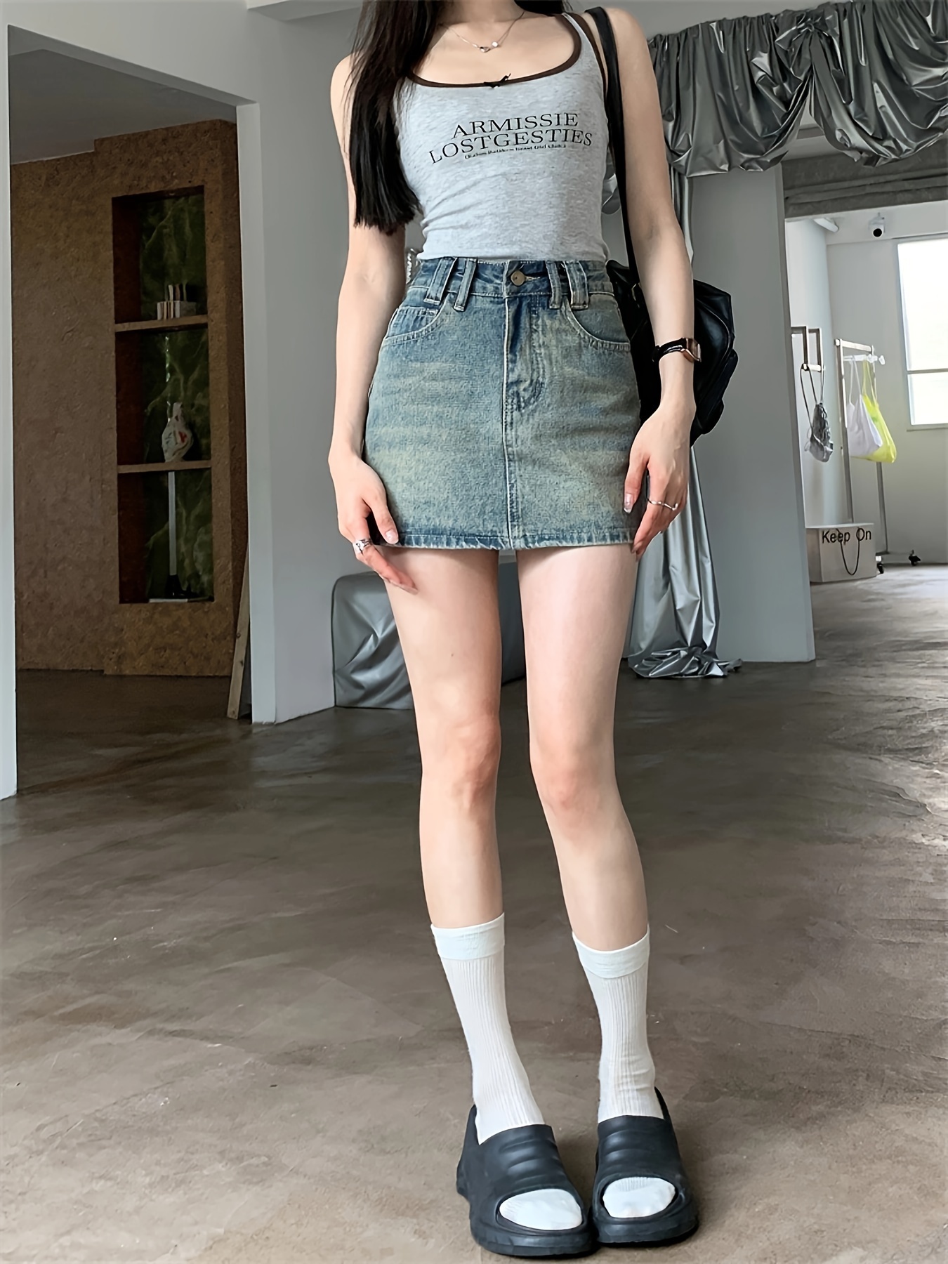 Chic High-Waist A-Line Denim Skirt with Built-In Liner - Casual, Non-Stretch, Machine Washable - Summer Fashion for Women