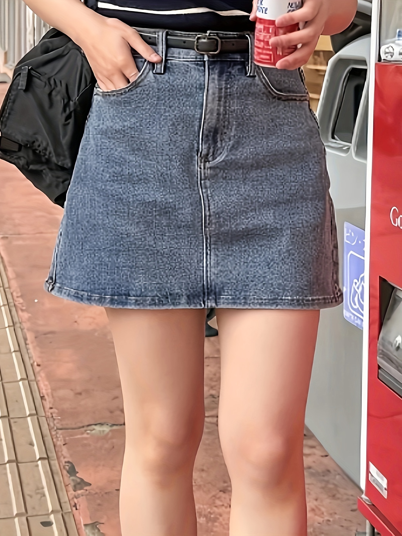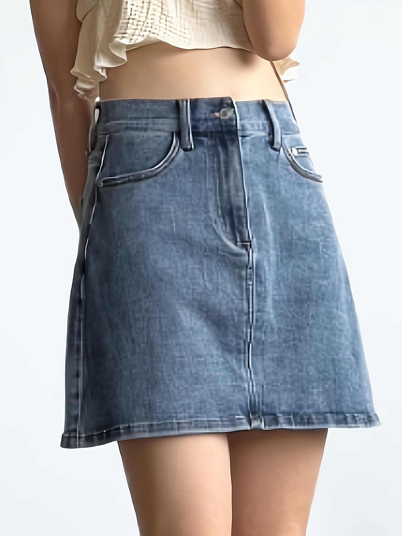 Mini Denim Skirt with Slash Pockets - Women's Denim Skirts for Casual Wear, Versatile, Basic, Washed Blue, Pocket Details, Easy to Style - Perfect for Daily Life, Outdoor Activities, and Travel