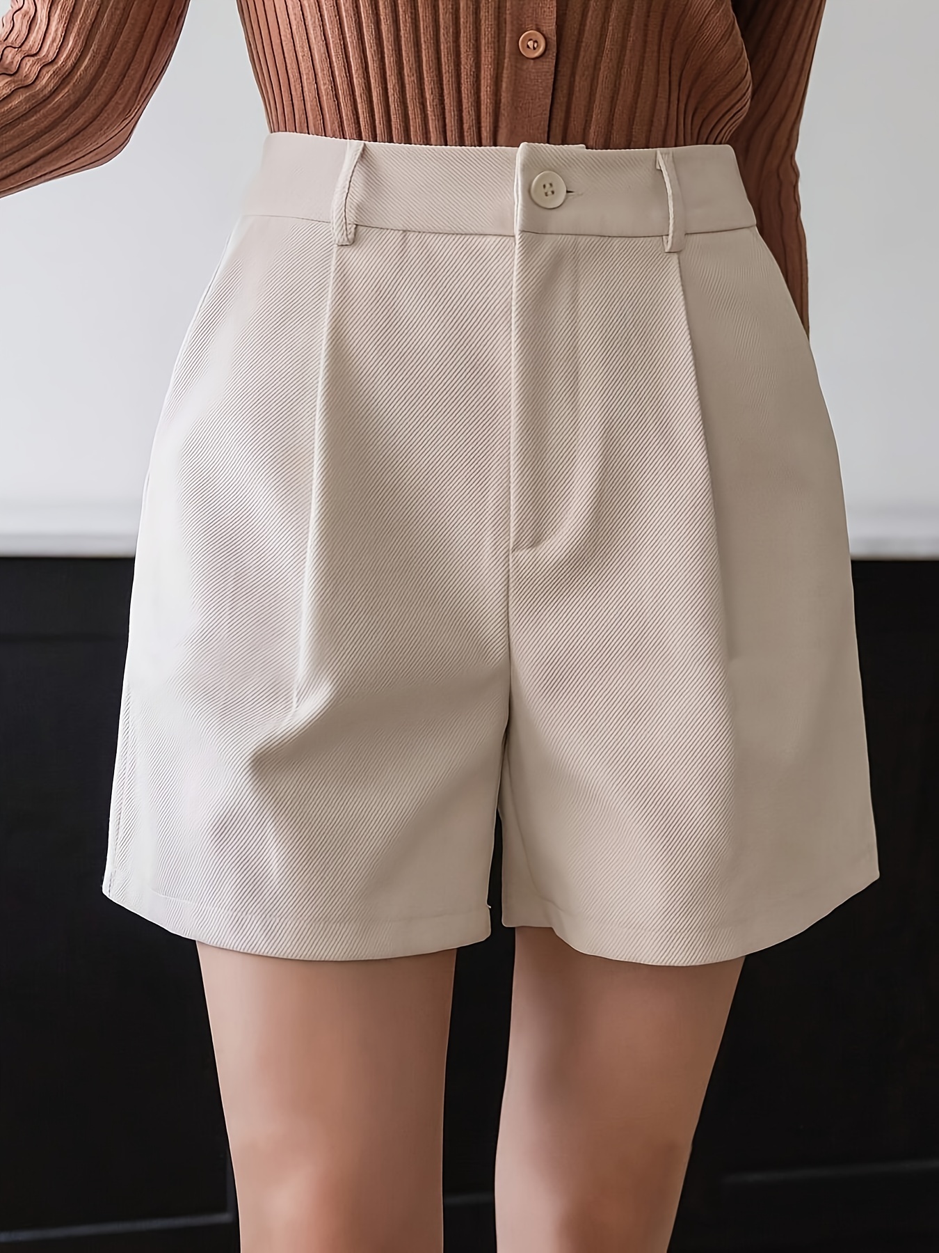 Women'S High-Waisted Straight Pants Shorts with Slant Pockets and Pleats, Solid Color, Woven Polyester, All-Season