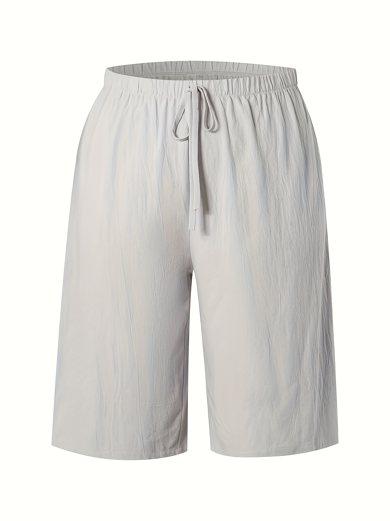 1pc Women'S Casual Polyester Shorts, Solid Color, All-Season, Woven Fabric, with Fake Drawstring Detail