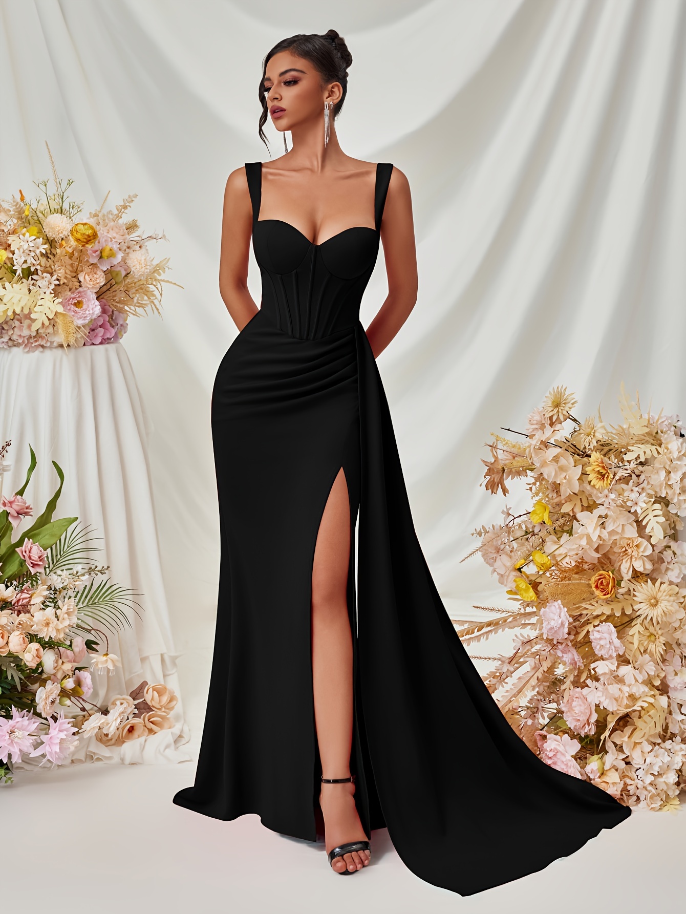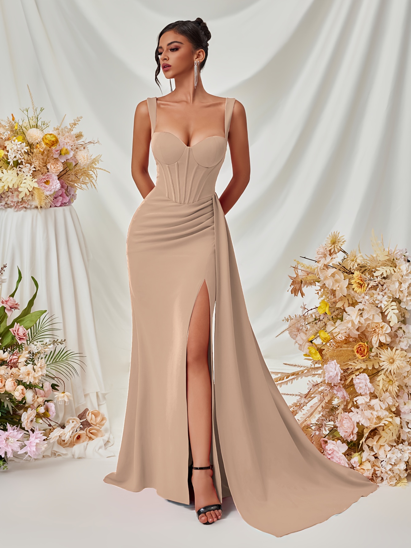 Elegant Spaghetti Strap Backless Gown with Thigh-High Slit - Perfect for Parties & Formal Events, Women's Evening Dress